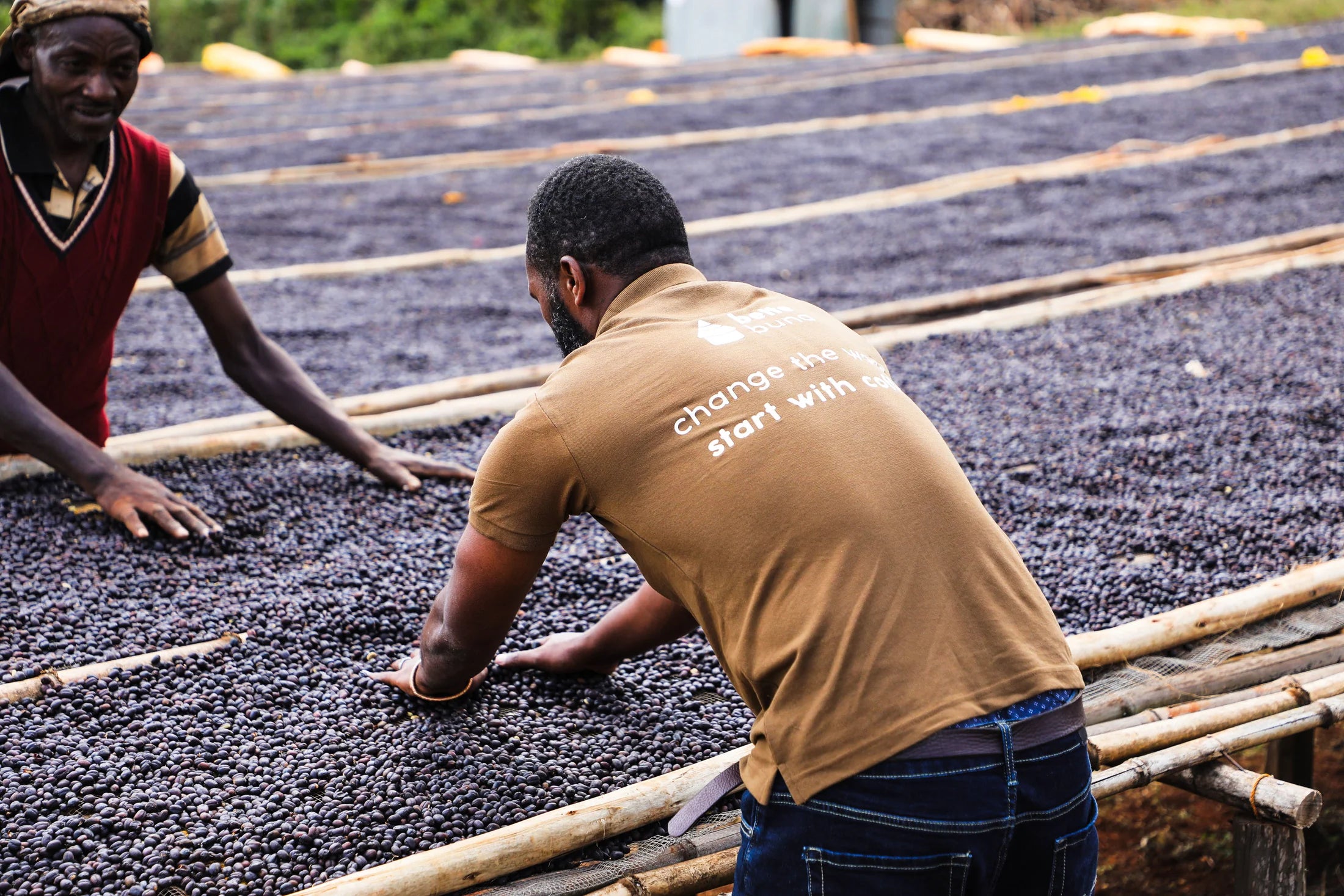 Megadu is a 220-hectare forested farm in Ethiopia’s Guji region, co-run by community leaders Gash Duba and Ato Saffay. Our naturally processed lot comes from Gash Duba’s plots, part of a collaboration that began as a small pilot to ensure mutual benefit for everyone involved. Following the classic Guji approach, the cherries are slow-dried on raised beds to enhance clarity and sweetness. The project has since flourished, exceeding expectations in both cup quality and community impact, thanks to meticulous cultivation and the exceptional growing conditions of the Guji highlands.